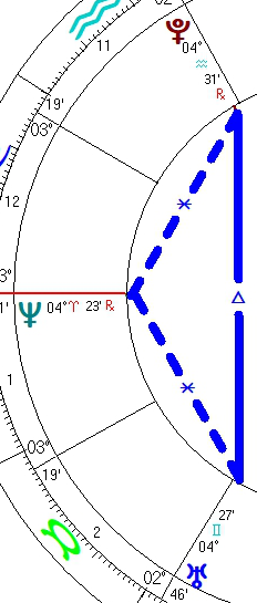 The Uranus-Neptune-Pluto Minor Grand Trine continues off and on through 4/25/2029.